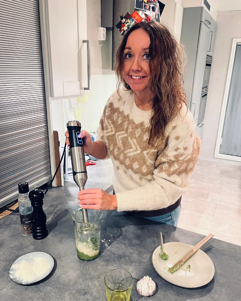 Den er rett og slett nydelig i bruk. Jeg bruker den til alt, supper, sauser, babymat og smoothies. Liker at den tåler varme gryter og at delene tåler oppvaskmaskin.