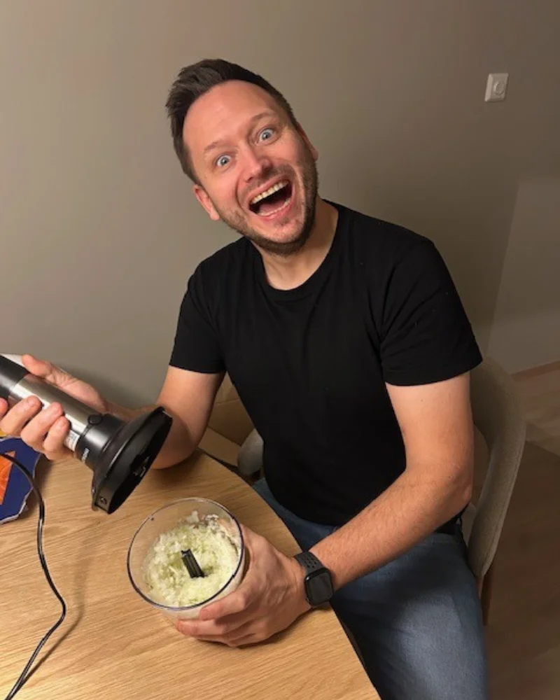Etter flere anbefalinger fra venner endte jeg også opp med å kjøpe meg en stavmikser. Hakkebollen har blitt en game changer for meg. Kutter opp løk på bokstavelig talt 3 sekunder!!🤩 Burde kjøpt for lenge siden haha… Beste kjøpet jeg har gjort!