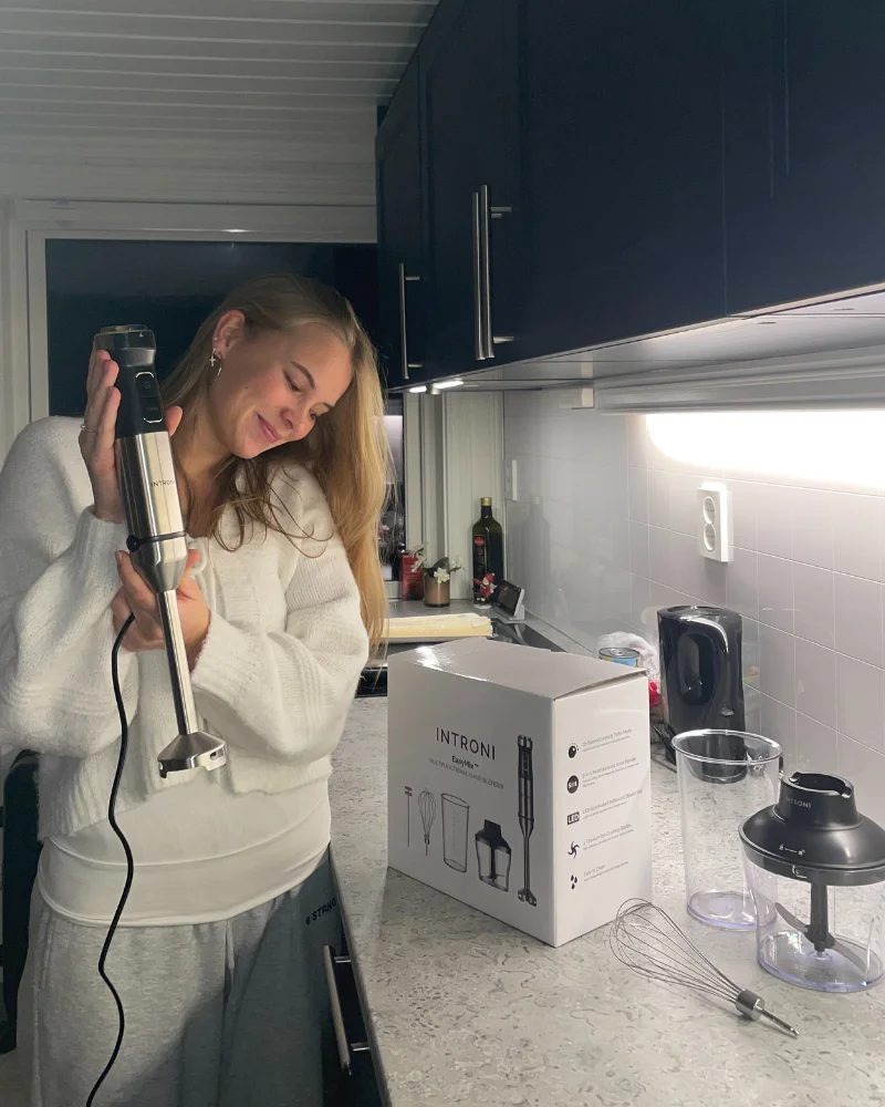 INTRONI stavmikseren er bra på så utrolig mye, men det beste med å ha kjøpt denne stavmikseren er hvor enkelt det er å pakke opp og ned, før og etter bruk. Har sikkert forkortet matlagingen med 90% og den kan brukes til alt❤️